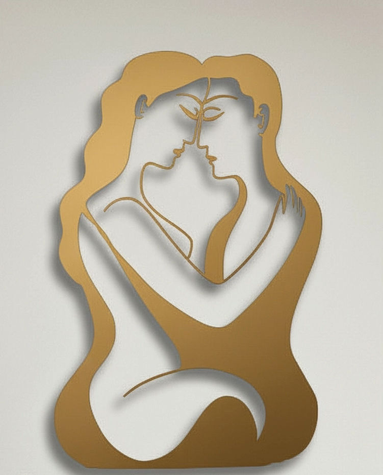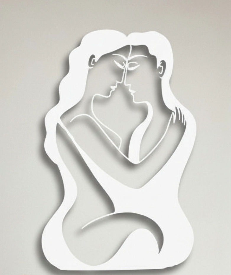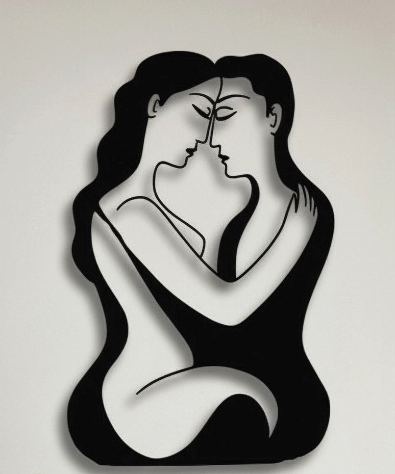 Il disegno raffigura una coppia che si abbraccia, stilizzata in una silhouette moderna. Le due figure sono intrecciate in un gesto intimo e affettuoso, con linee curve e sinuose.